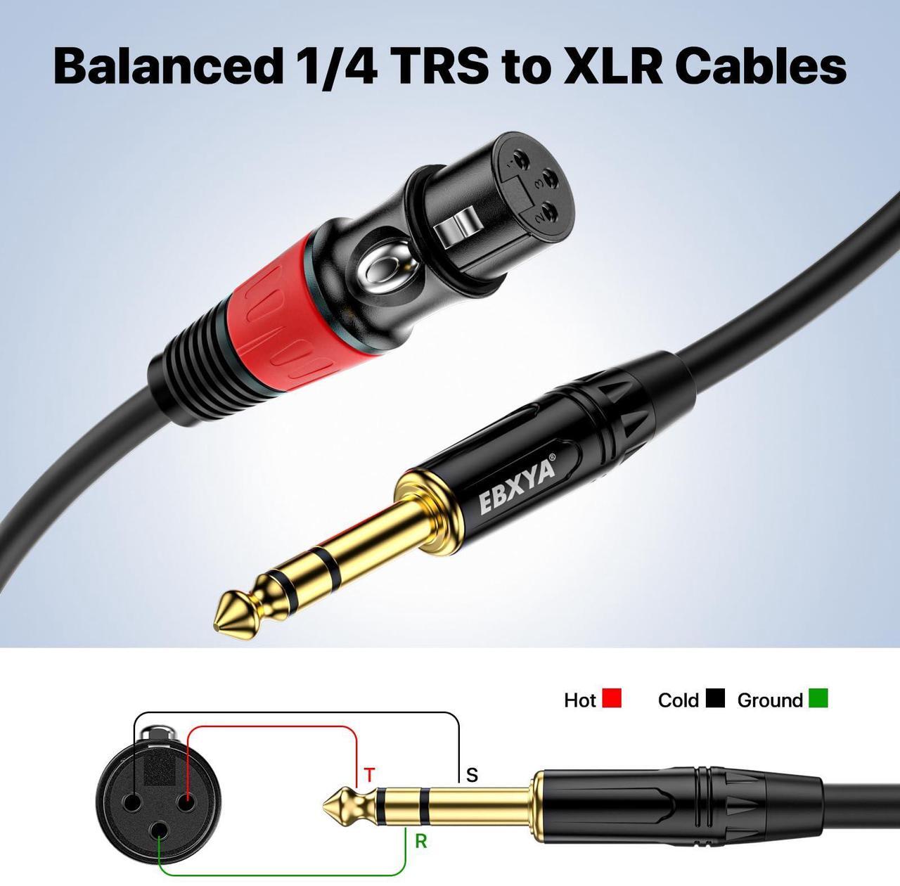 EBXYA 1/4 to XLR Cable - 6.35mm TRS Plug to Balanced 3-pin Female XLR Microphone Cable, 6ft 2 Pack