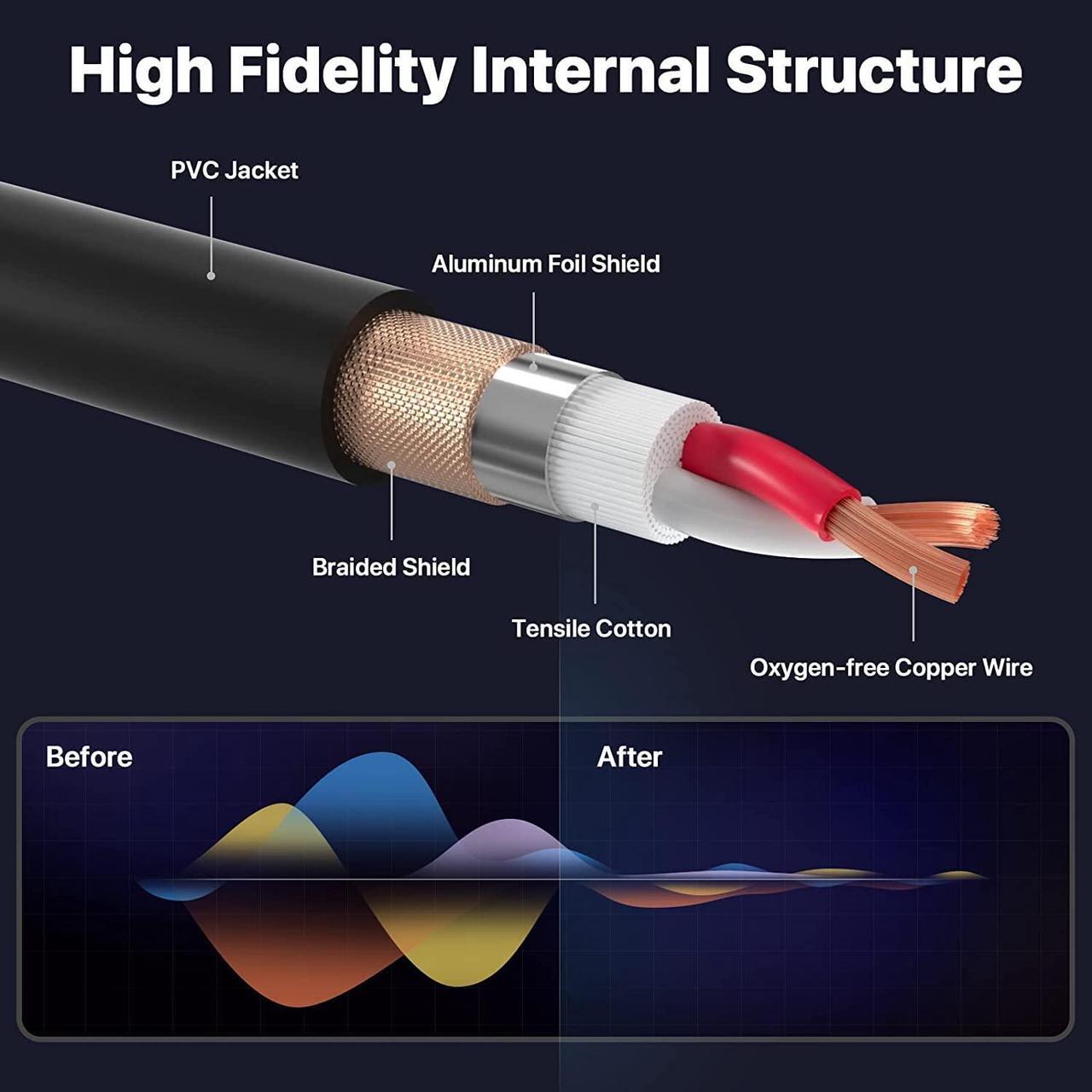 - Professional Anti-Noise Design: The internal wire structure of the 1/4 TRS to XLR male cable uses a copper core high-density braided shield to achieve a high degree of anti-interference effect and resist external interference. Oxygen-free copper conductor, the transmission speed is very fast