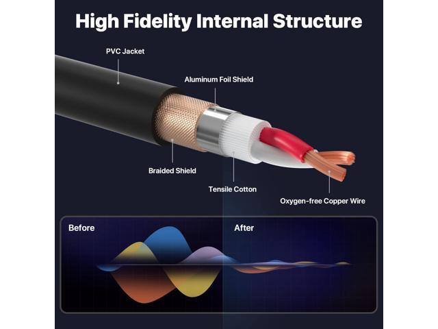 Professional Anti-Noise Design: The internal wire structure of the 1/4 TRS to XLR male cable uses a copper core high-density braided shield to achieve a high degree of anti-interference effect and resist external interference. Oxygen-free copper conductor, the transmission speed is very fast