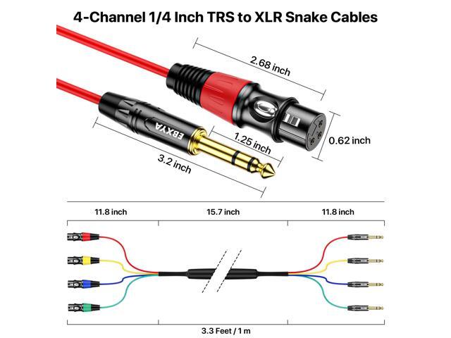 Newly Upgraded 4-Channel Cable: The 4-channel XLR to 1/4 TRS Snake Cable consists of 4 independent cable signals that effectively transmit multiple audio signals through a single cable. 1/4 to XLR Snake Cable is easy to carry and store, and it can easily solve the trouble of winding multiple single-channel cables