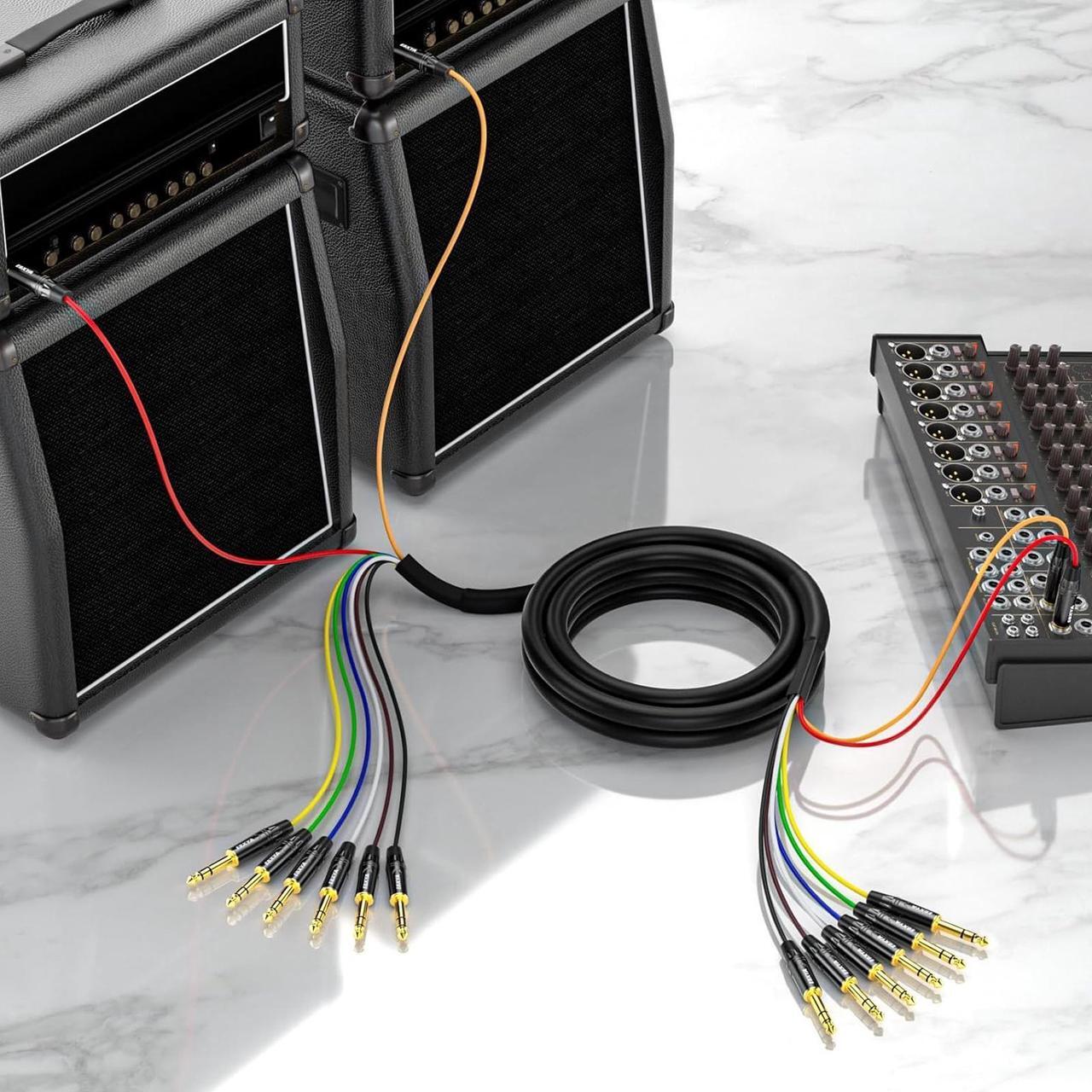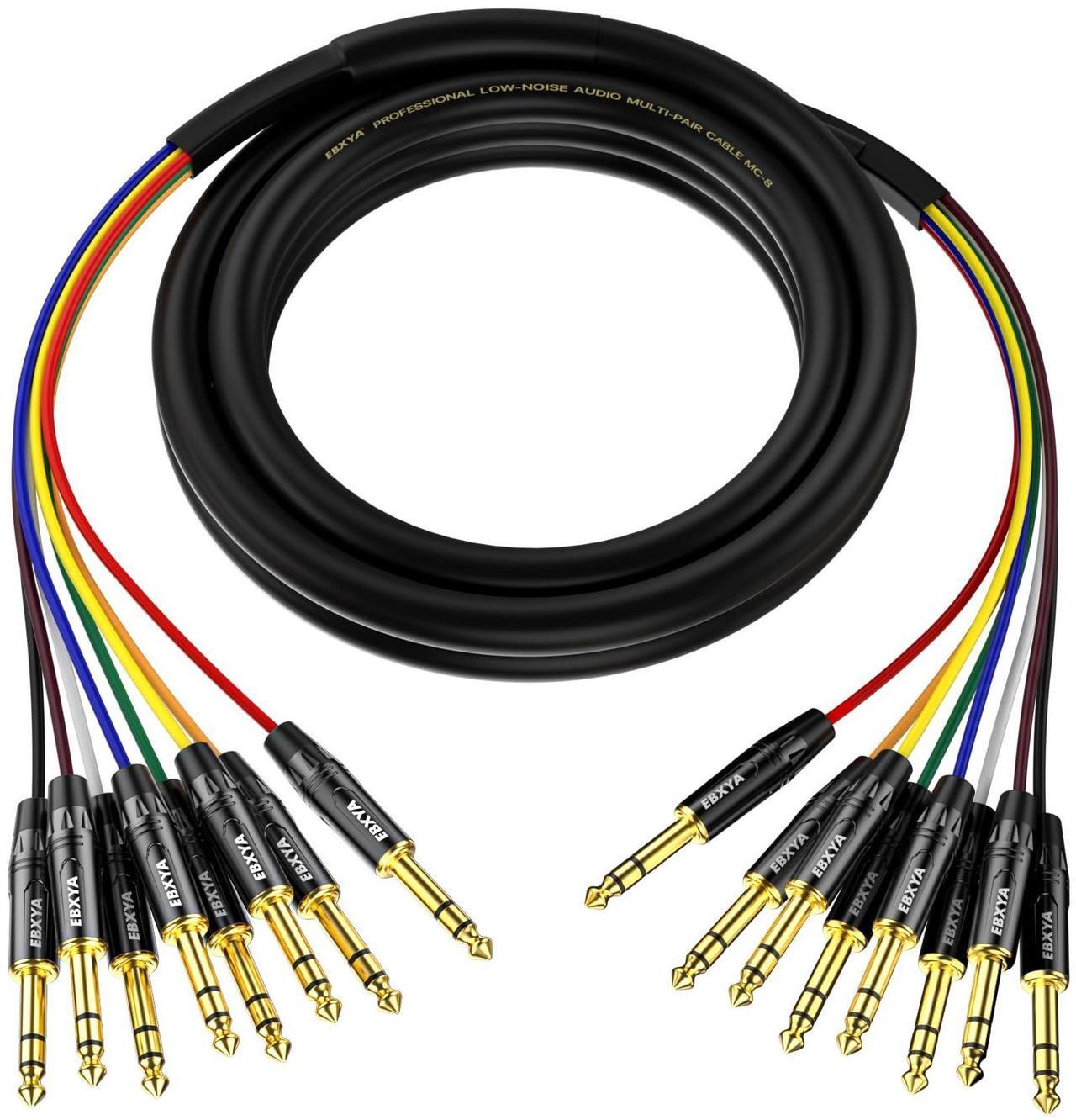 EBXYA 8-Channel 1/4 Inch TRS to TRS Snake Cables 10ft, 6.35mm Male Jack Stereo Audio Balanced Line for Keyboard, Amplifier, Speaker, Mixer, 1 Pack