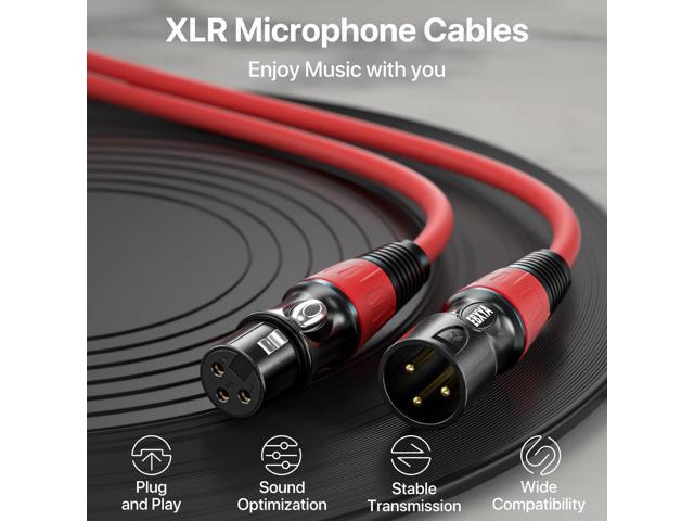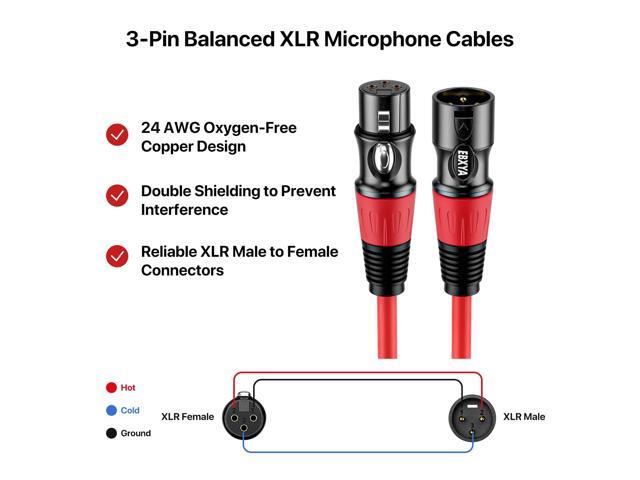SELF-LOCKING CONNECTOR - XLR Male to Female Cable has a self-locking design that is easy to pull out & insert, and firmly lock. XLR Cables use 24AWG oxygen-free copper, multiple shielding, and gold-plated pin designs, maximizing external interference resistance and providing maximum conductivity and signal clarity