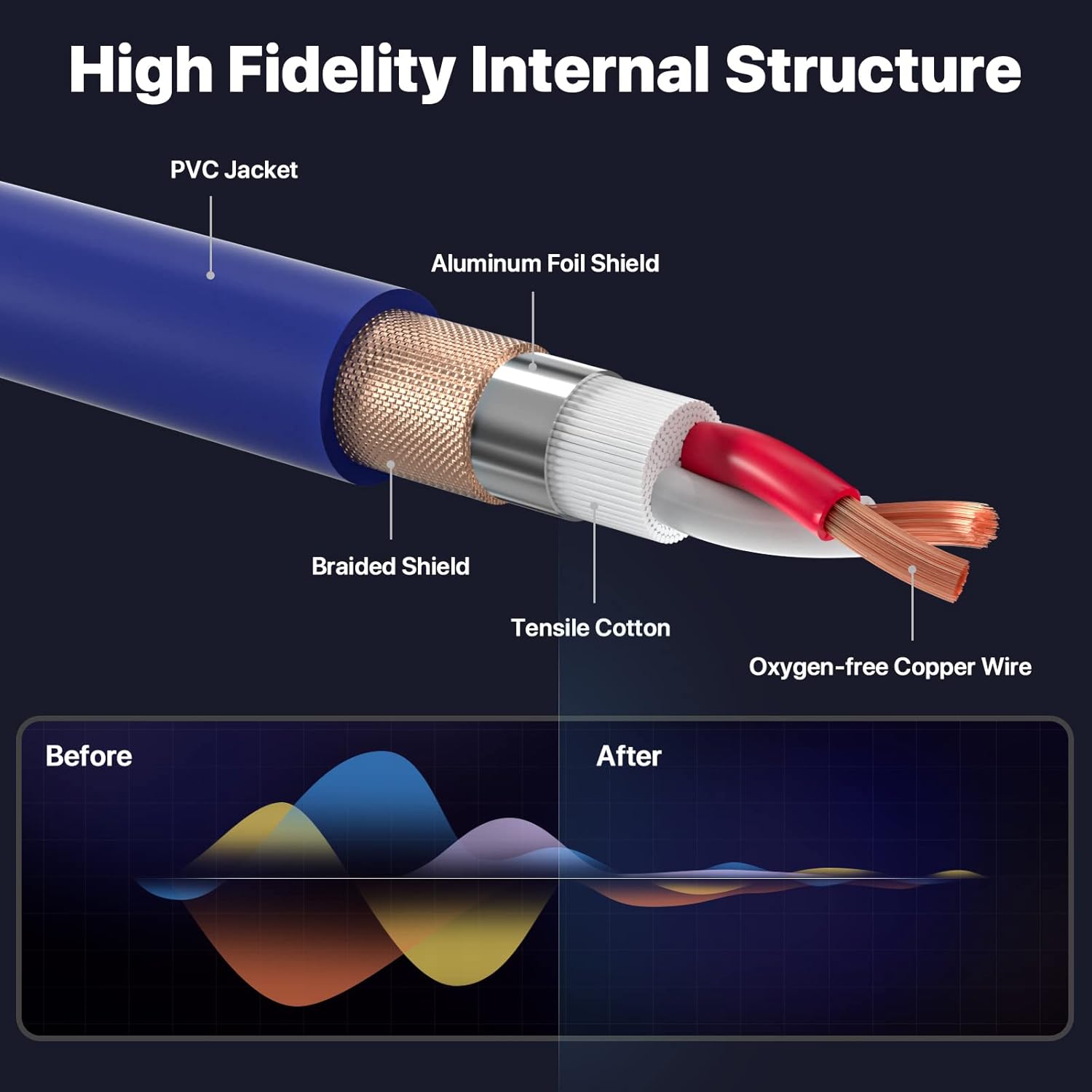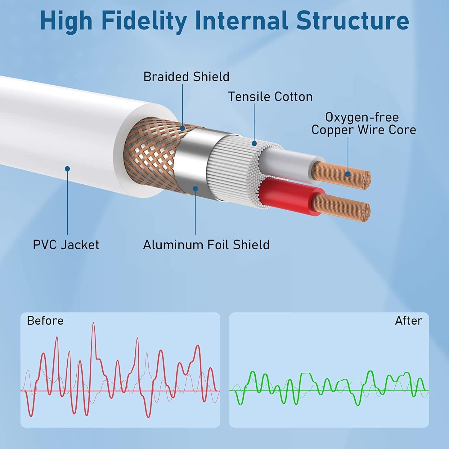 - Professional Anti-Noise Design: The internal wire structure of the microphone cable uses a copper core high-density braided shield to achieve a high degree of anti-interference effect, and resist external interference. Oxygen-free copper conductor, the transmission speed is very fast