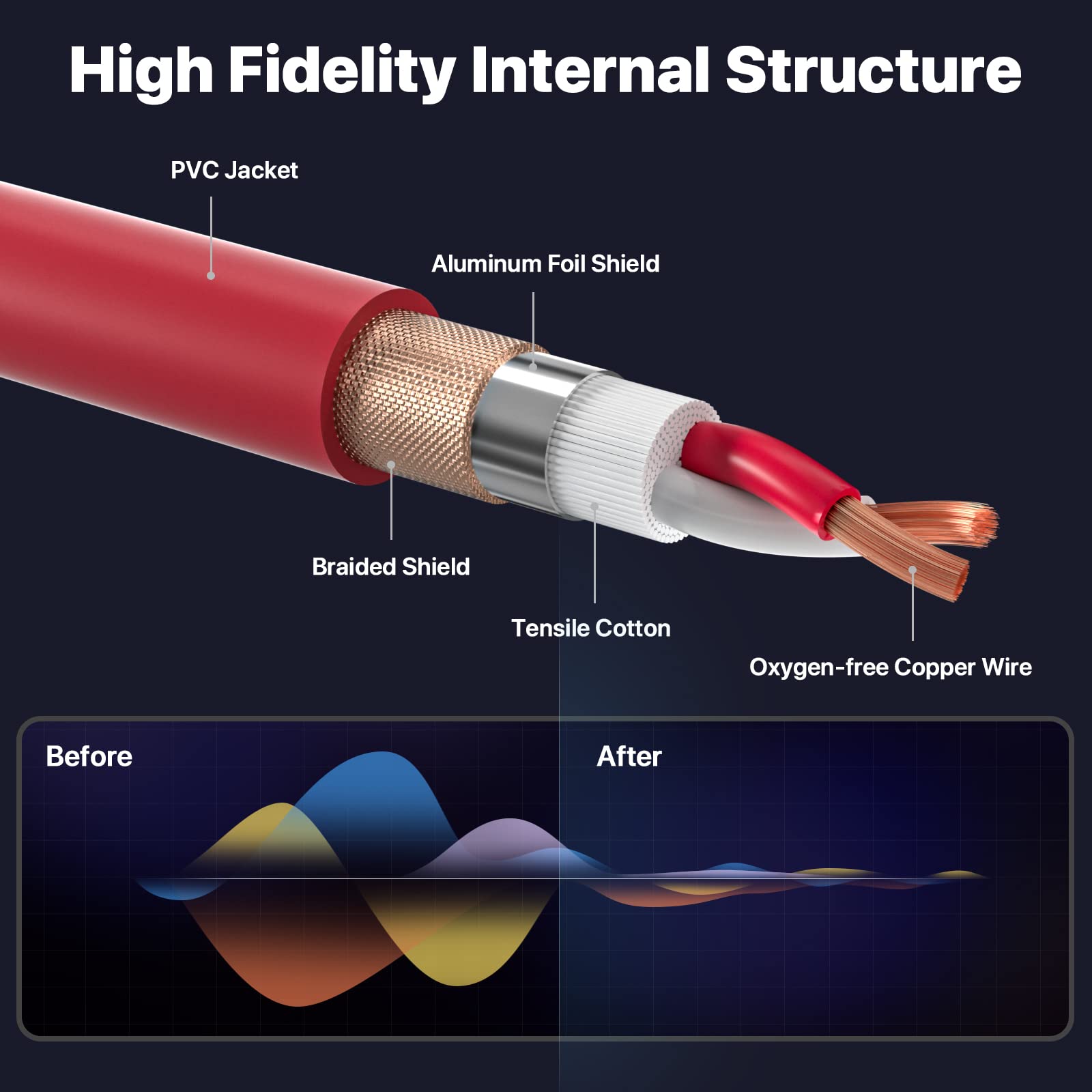 - Professional Anti-Noise Design: The internal wire structure of the microphone cable uses a copper core high-density braided shield to achieve a high degree of anti-interference effect, and resist external interference. Oxygen-free copper conductor, the transmission speed is very fast