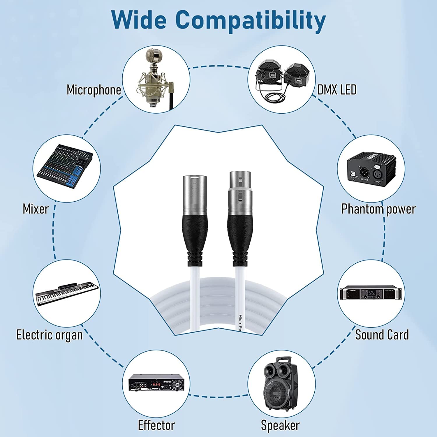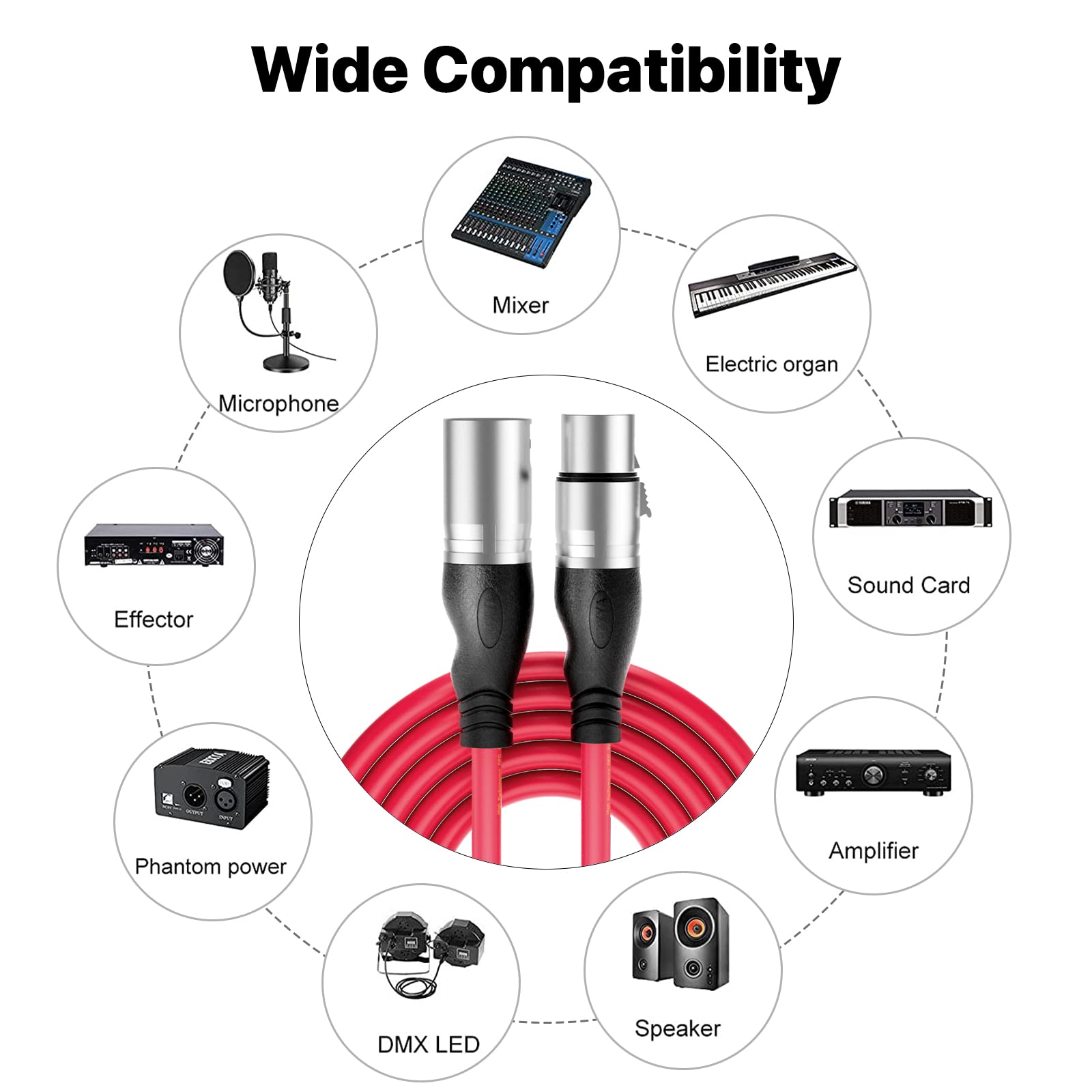 - Wide Compatibility: The 3-Pin XLR cable can be used on any equipment equipped with 3-Pin XLR, such as microphones, amplifiers, mixers, phantom power supplies, speakers, stage dmx light, etc. Let you enjoy your music life anytime, anywhere. At home, outdoors, parties, studio recording, live sound, and other occasions