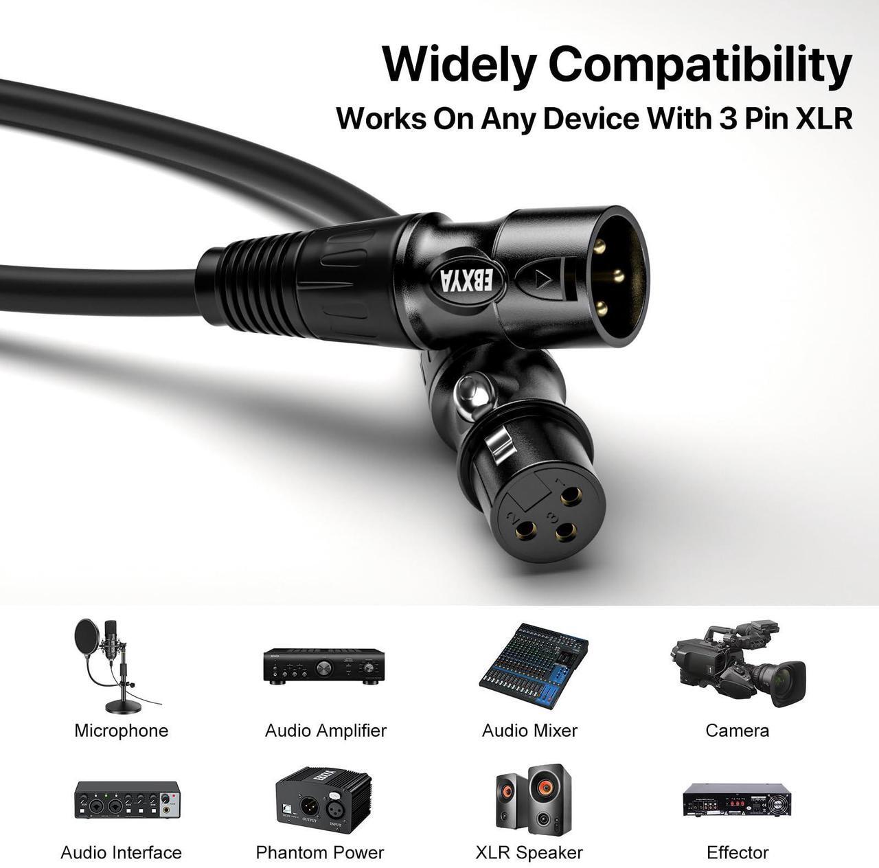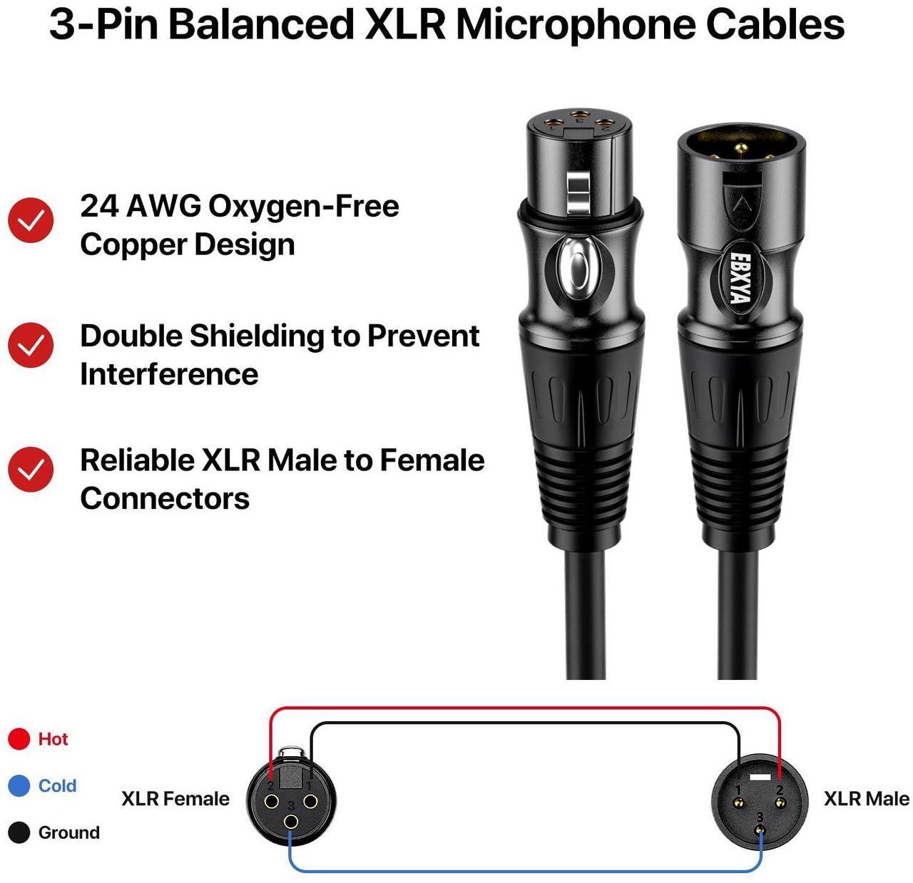 - SELF-LOCKING CONNECTOR - EBXYA XLR Male to Female Cable has a self-locking design that is easy to pull out & insert, and firmly lock. XLR Cable adopts heavy-duty metal connectors and a gold-plated pins design, which can withstand a bend test of times and increase the cable's durability