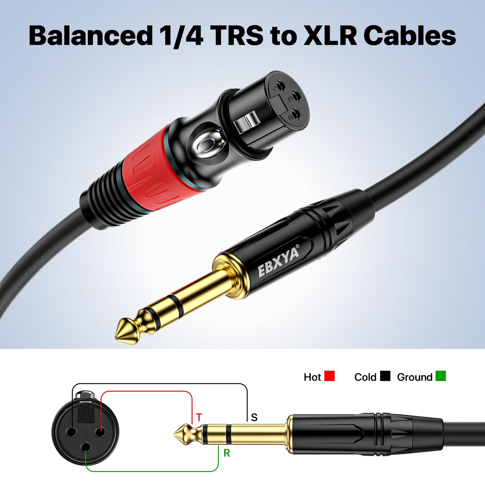 - Self-locking Connector - EBXYA XLR Female to 1/4'' TRS is made of a self-locking design that is easy to plug and unplug. XLR cable adopts heavy-duty metal connectors and gold-plated pins design, helping to ensure a higher quality of sound