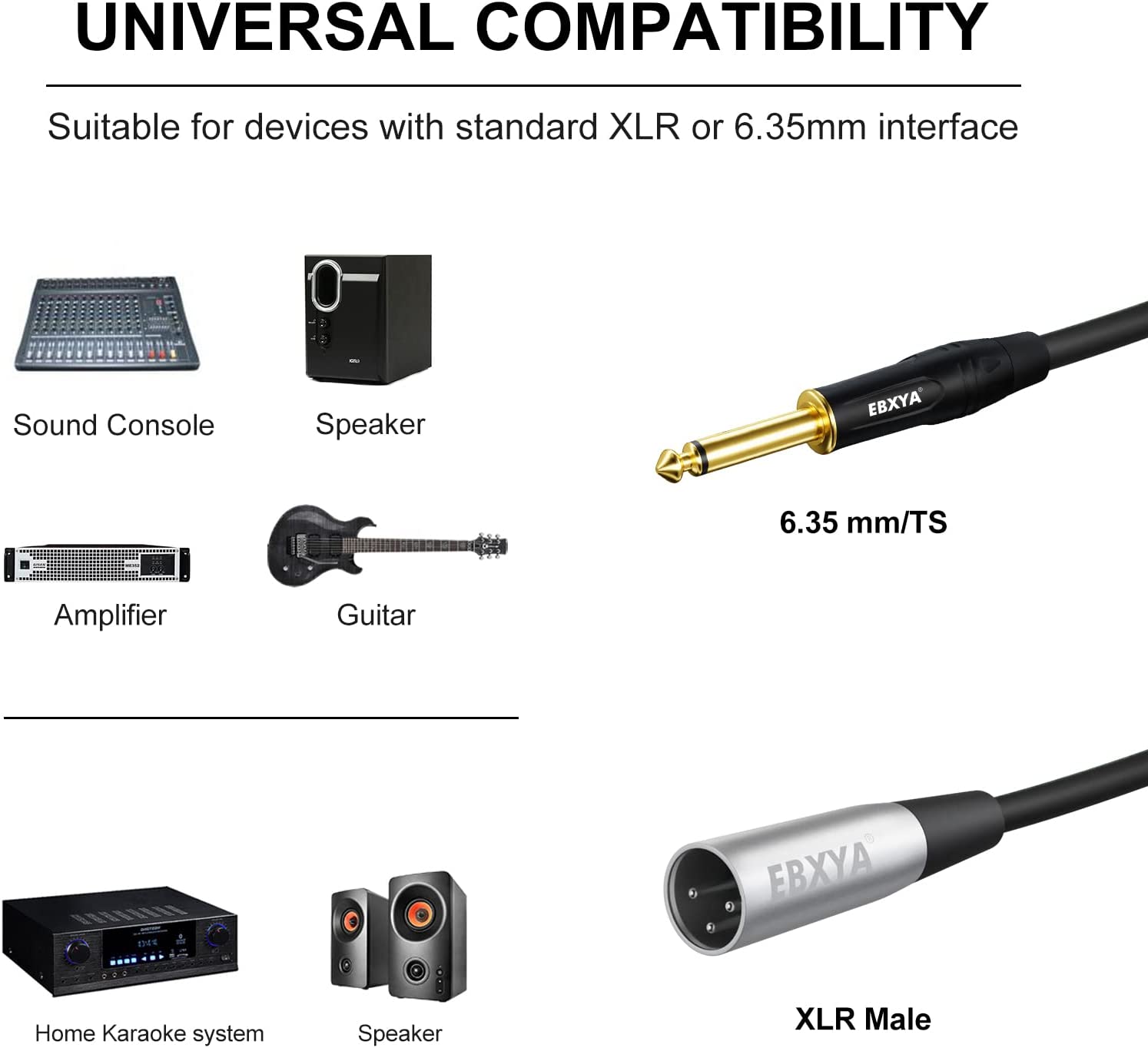 EBXYA XLR Male to 1/4 Inch TS Mono Unbalanced Microphone Cable, 6.35mm to XLR Cable, 2 PCS