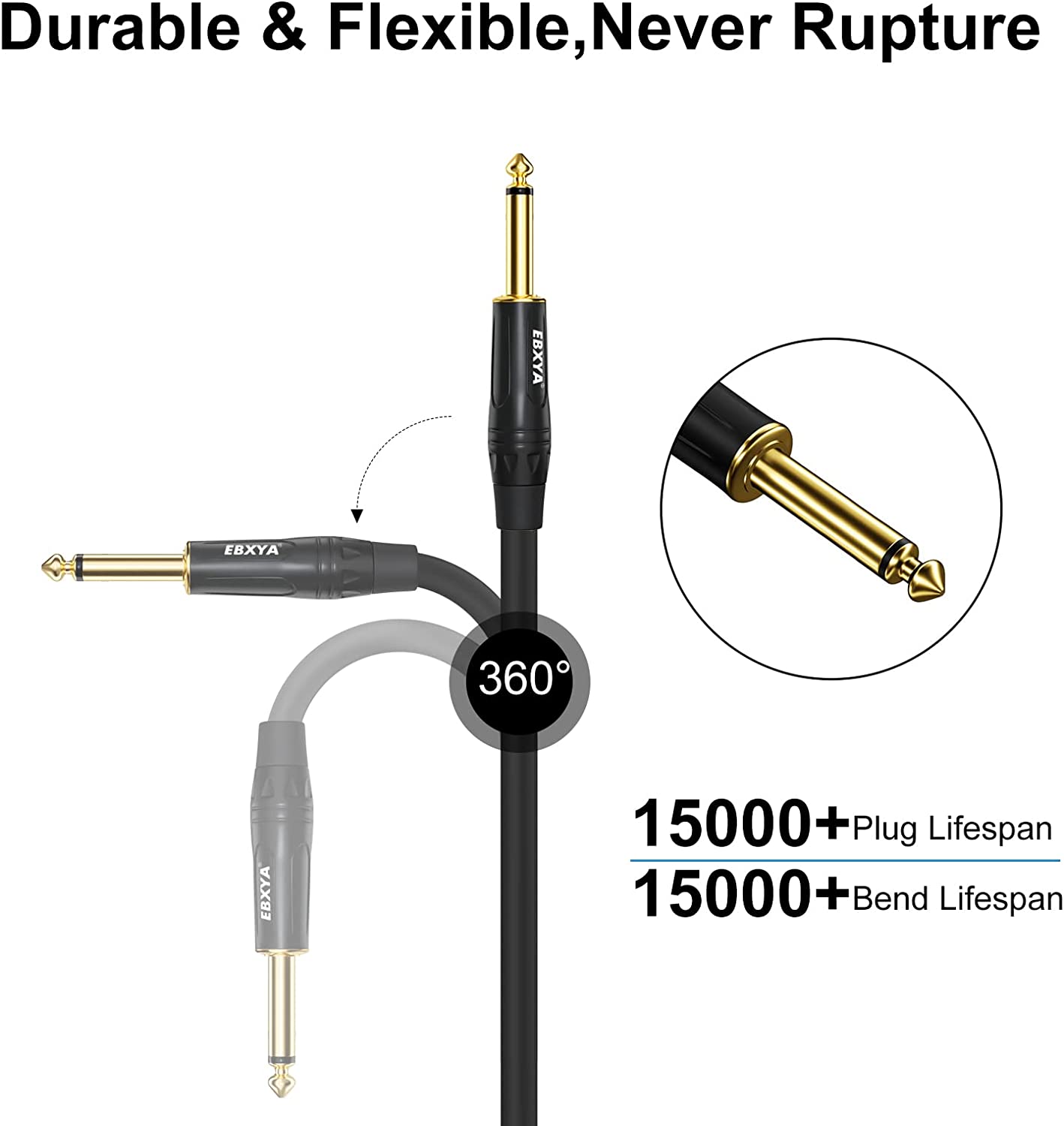 - DURABLE The professional audio cable uses the traditional large 3-pin zinc alloy XLR male to 1/4 TS mono jack with high quality 24K gold plated plugs on both ends.
