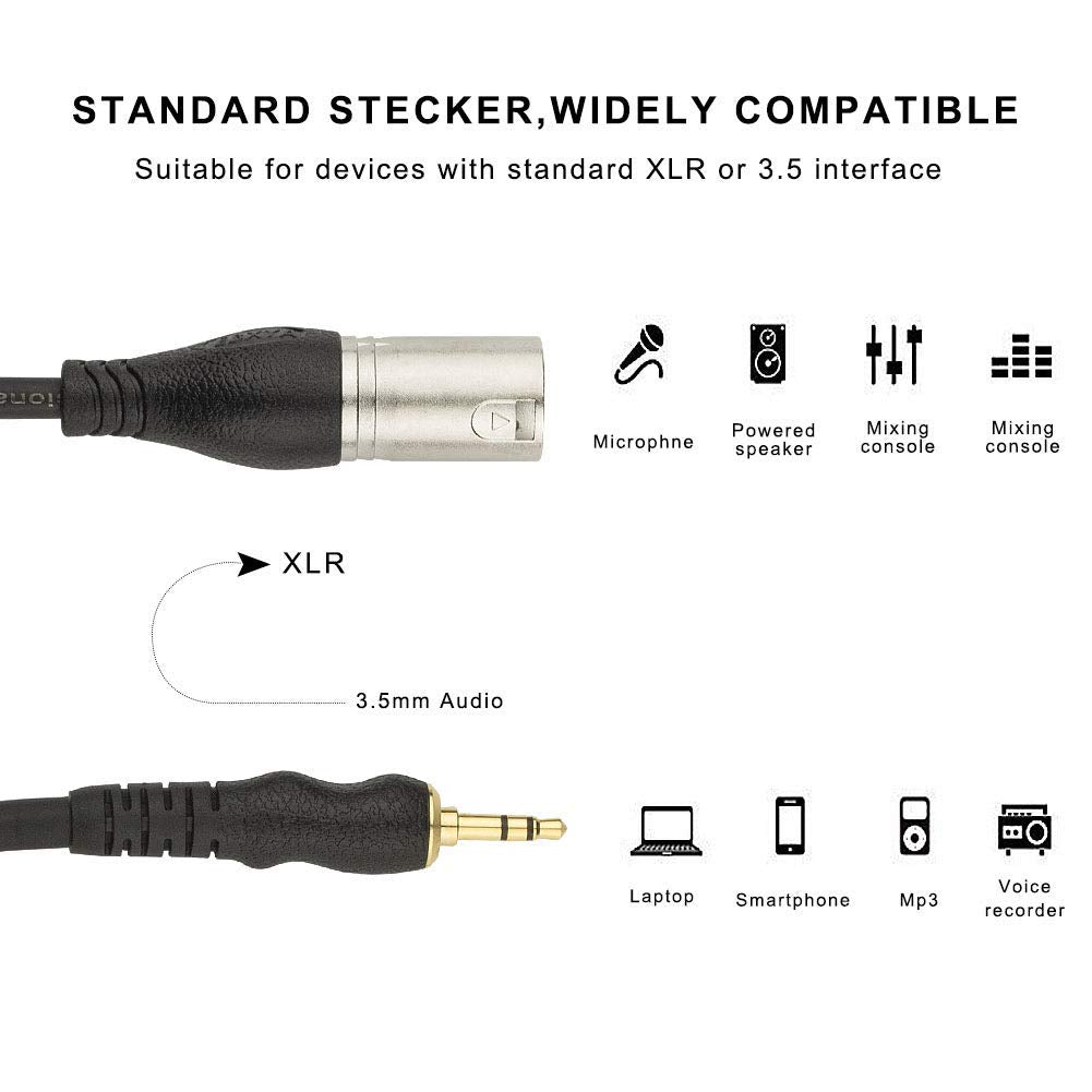 PREMIUM SOUND EBXYA trs to xlr microphone cable features a 4N oxygen-free copper core and 3.5mm gold-plated plug for improved signal conductivity and enhanced sound. Very low capacitance to reduce buzz and noise.