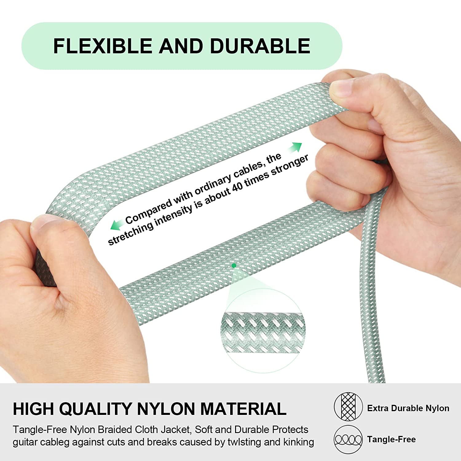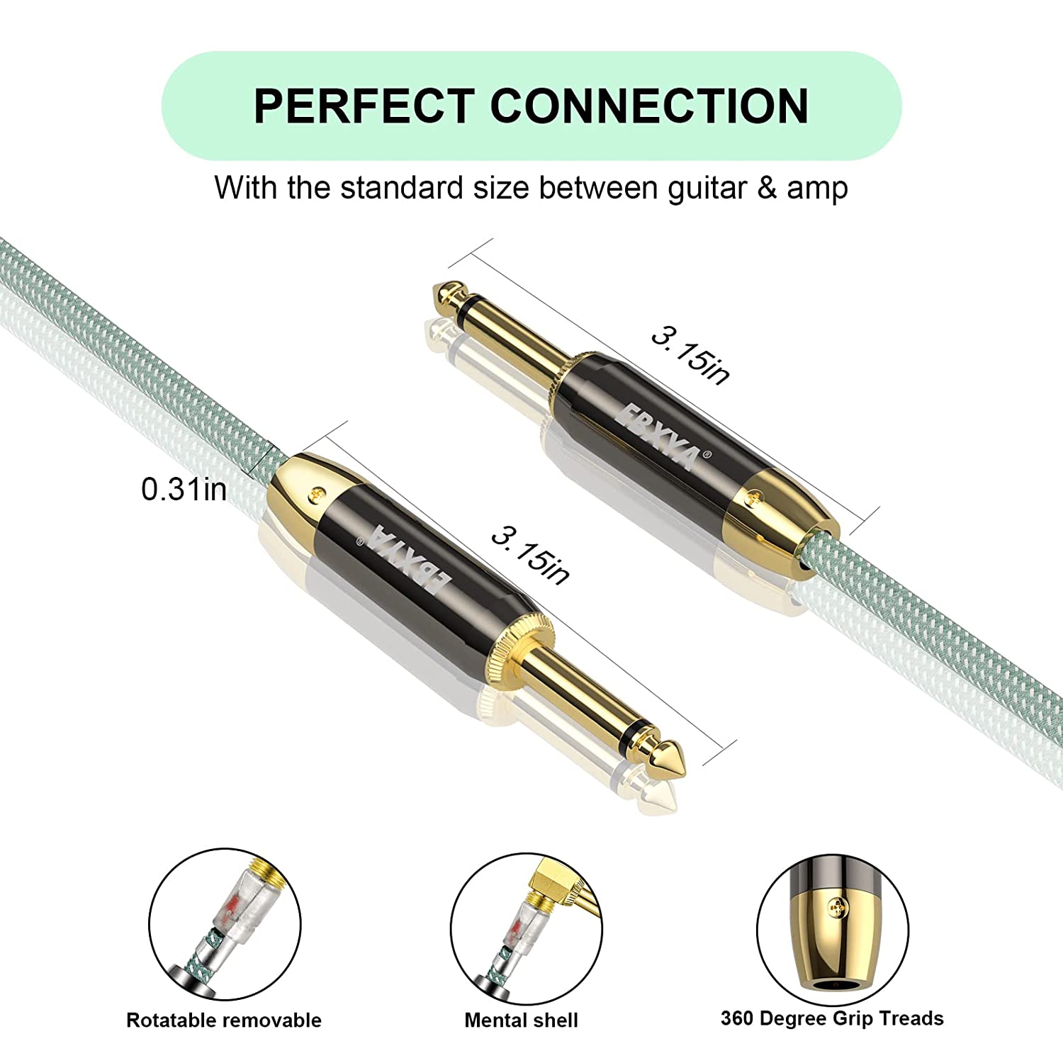 EBXYA Guitar Cable , 1/4 Inch TS Instrument Cable Green, Professional Electric Instrument Cable Bass AMP Cord for Electric Guitar, Bass, Electric Mandolin, Pro Audio
