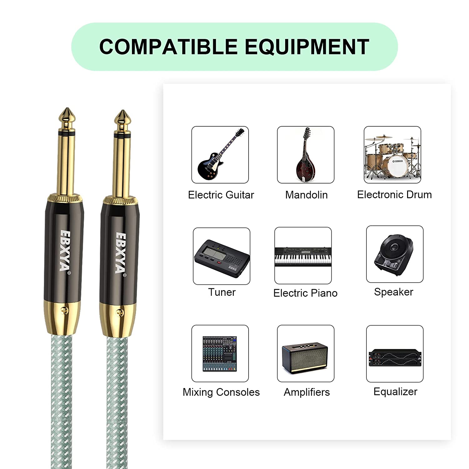 Universal Compatibility:The instrument cable is a versatile cable that is commonly used in a wide range of audio devices with the standard 6.35mm interface. Some of the common devices that can be connected using this cable include mixers, power amplifiers, microphones, effects pedals, electronic organs, electric guitars, basses, keyboards, electronic drums, speakers, and more.