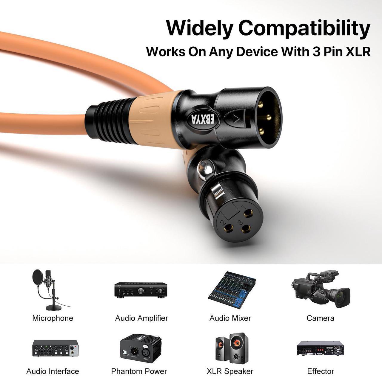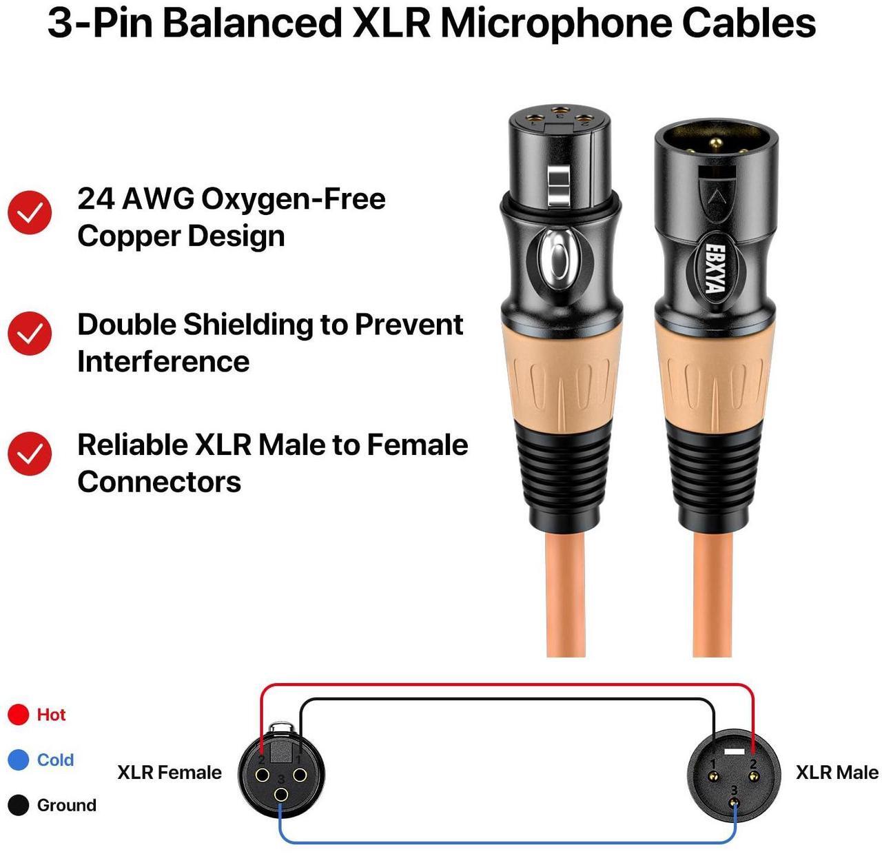 - Self-Locking Connector - EBXYA XLR Male to Female Cable has a self-locking design that is easy to pull out & insert, and firmly lock. XLR Cable adopts heavy-duty metal connectors and a gold-plated pins design, which can withstand a bend test of times and increase the cable's durability